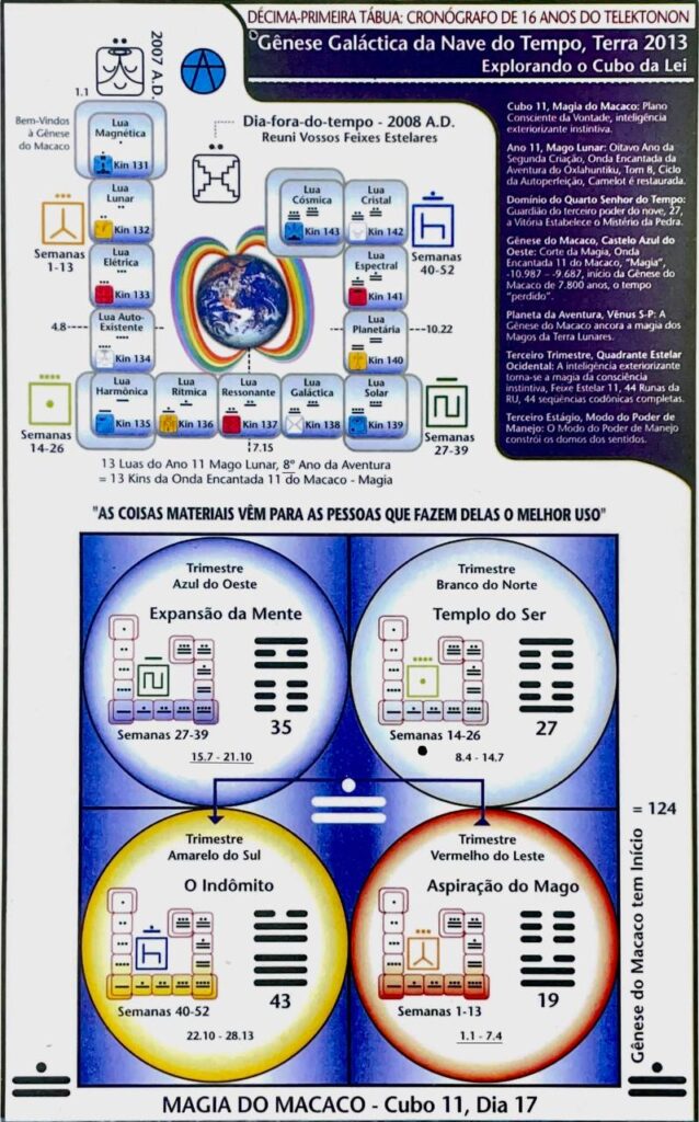 O Kin Oculto, V. 11, H. 17. UMB 315. > Josimar synchronotron: Runa Harmônica UR 95: O Todo da Arte Galáctico Torna-se Meditação da Realidade. 4ª Oitava: Oitava do Todo da Arte Galáctica. Runa da Fila 12. Quinta porta de Unidade do tempo vertical ascendente. Corresponde ao Profeta (Caminhante do Céu): Terceiro Assento de Poder de Hunab Ku 21. Gera o hiperplasma Beta-Alfa secundário do Polo Sul (Darka) estimulando o controle da mente superior e sela o plasma radial Kali. Detem a Corte da Profecía Cósmica. Abre a Quarta porta do heptal. Porta da Iniciação. Marte Solar-Profético.