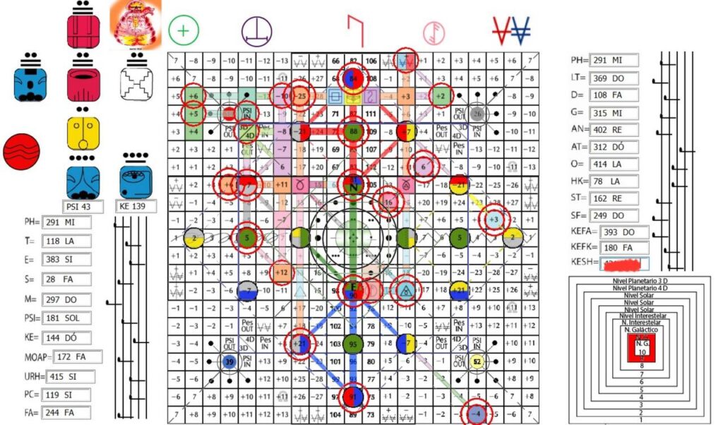 A Matriz Syncrônica, V. 14, H. 1. UMB 28. + Gerador Beta-Alfa. Ativa o fluxo do espaço externo hiperplásmico da Ascensão Cósmica (segunda dimensão do tempo). Campo de força do controle da mente superior (2D) ativado pelo campo de força (7D) do Perceptor Holomental radializado radiosonicamente: Comando Cósmico Descendente.