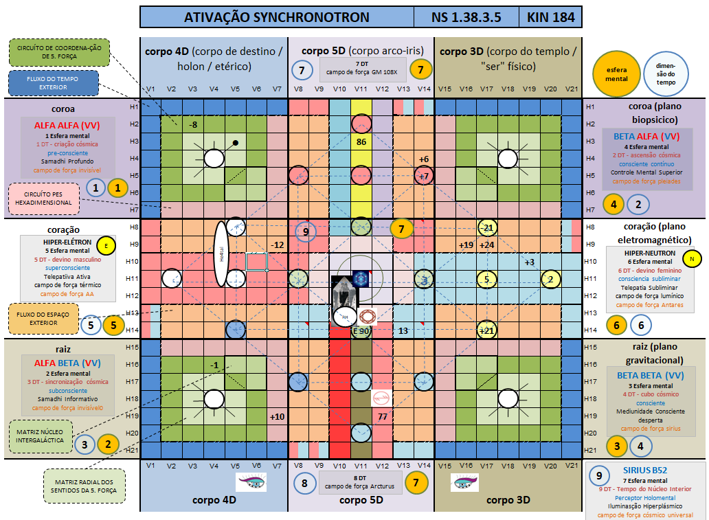 E (espaço), V.4, H.16. UMB 257. (-1) Primeira magnitude do circuito coordenador superconsciente de quinta força do canal Alfa-Beta. Sublimar e transferir os sinais internos do tempo 5D do propósito magnético ao núcleo radial dos sentidos da Sincronização Cósmica.
