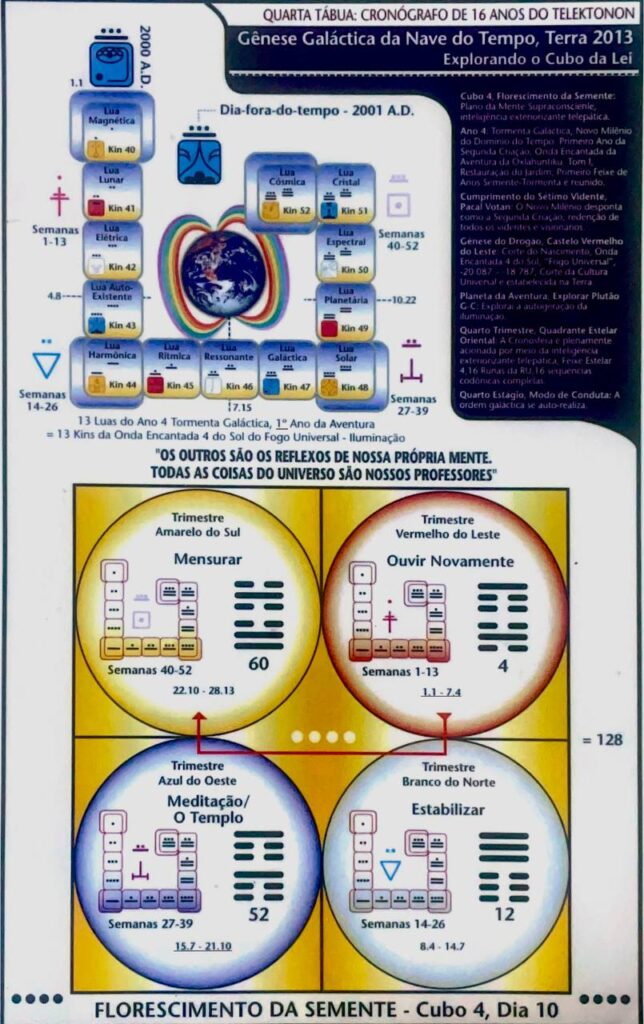O Kin Oculto, V. 14, H. 17. UMB 318. > Josimar synchronotron: (-7) Sétima magnitude do fluxo do espaço externo sublima o hiperplasma Beta-Beta do Cubo Cósmico (na 4ª dimensão do tempo exterior). Campo de força da mediunidade do consciente desperto (4D) sublimado pelo campo de força do Perceptor Holomental radializado radiosônicamente (8D): Comando Harmônico Ascendente. Corresponde ao Sábio (Humano): Terceira Fonte de Poder de Hunab Ku 21 na Corte do Profeta (UMB 315). Ativado pela linha de força elétrica lumínico-térmica descendente Kemio “luz do calor interior” (UMB 393). A sabedoría é a fonte da profecia. Terra Solar-Profética.