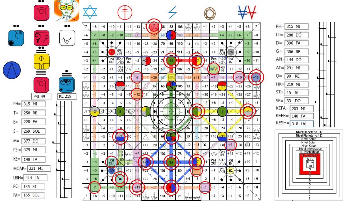 A Matriz Syncrônica, V. 14, H. 18. UMB 269. (-6) Sexta magnitude do fluxo do espaço externo sublima o hiperplasma Beta-Beta do Cubo Cósmico (na 4ª dimensão do tempo exterior). Campo de força da mediunidade do consciente desperto (4D) sublimado pelo campo de força do Perceptor Holomental radializado radiosônicamente (8D): Comando Harmônico Ascendente.