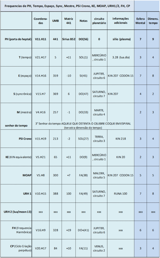 A Matriz do Tempo,   V.21, H.17. UMB 5. (+11) Décima primeira magnitude ativa a Liberação Espectral do fluxo do tempo externo do Cubo Cósmico. Corresponde-se com a 11ª h e 11ª v que coordena a matriz do PHM.