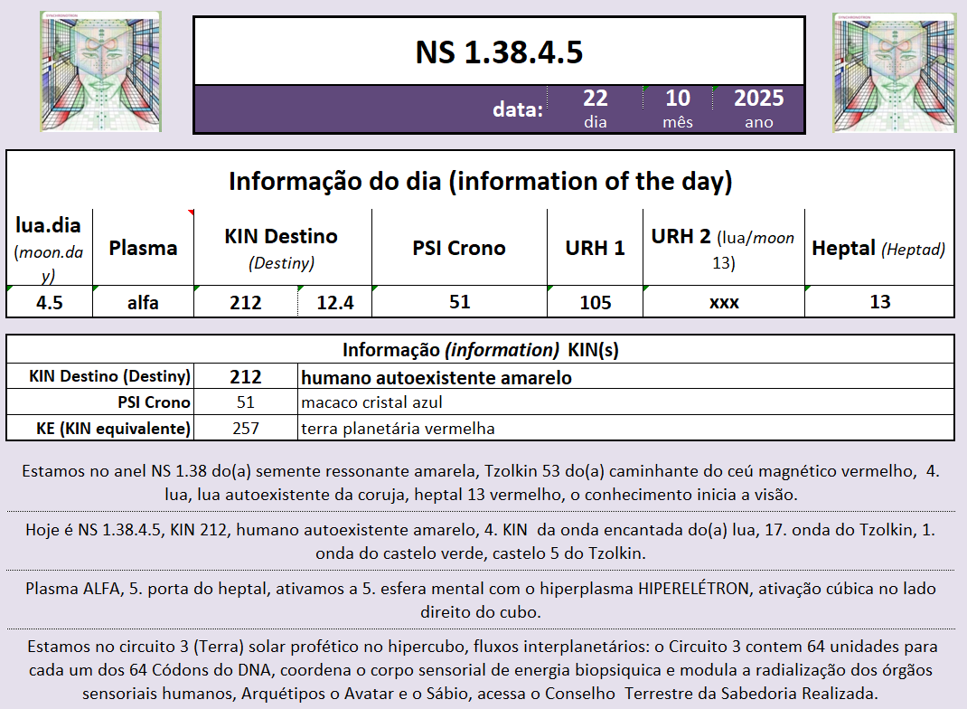 HK (Hunab Ku), V. 21, H. 13. UMB 9. –Terminal Beta-Beta sublima o fluxo do espaço externo hiperplásmico do Cubo Cósmico (Quarta dimensão do tempo). Campo de força do consciente subliminar lumínico Duar Azul sublima campo de força da mediunidade do consciente desperto.