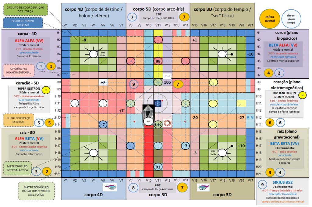 S (syncrônica), V. 15, H. 13. UMB 363. (-20) Vigésima magnitude do fluxo do espaço externo sublima o hiperplasma Beta-Beta do Cubo Cósmico (na 4ª dimensão do tempo exterior). Campo de força da mediunidade do consciente desperto (4D) sublimado pelo campo de força lumínico Duar azul do consciente subliminar (6D).
