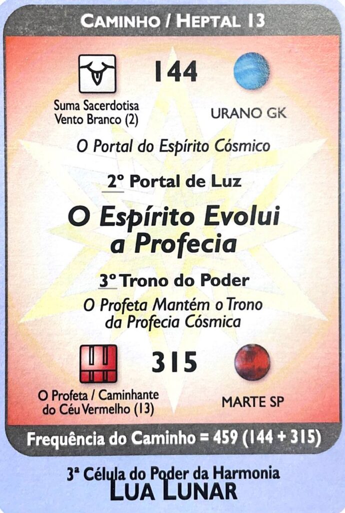 AT (KIN antípoda), V. 11, H. 20. UMB 144. Runa Harmônica UR 91: O Todo da Arte Galáctica Define o Espaço. 4ª Oitava: Oitava do Todo da Arte Galáctica. Runa da Fila 12. Segunda porta de Unidade do tempo vertical ascendente. Corresponde a Suma Sacerdotisa (Vento): Segunda Porta de luz de Hunab Ku 21. Abre a Porta da luz Universal da Corte do Profeta (UMB 315) onde é armazenada a profecía cósmica. A Suma Sacerdotisa ascende ao Polo Sul (Darka) como Alento Cósmico e ascende como profecía. Gera o hiperplasma Beta-Beta estimulando a mediunidade do consciente desperto e sela o plasma radial Gama. Abre a Terceira porta do heptal: A Porta do Misterio. Urano Solar-Profético.