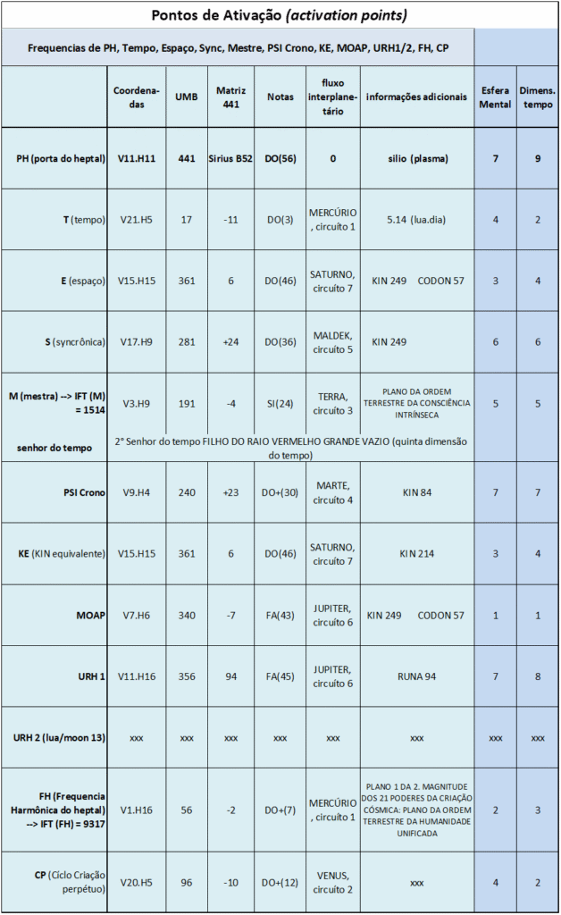 T (tempo), V.21, H.5. UMB 17. (-11) Décima primeira magnitude sublima a Liberação Espectral do fluxo do tempo externo da Ascensão Cósmica. Corresponde-se com a 11ª H e 11ª V que coordena na matriz do PHM.