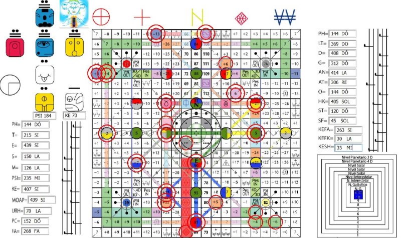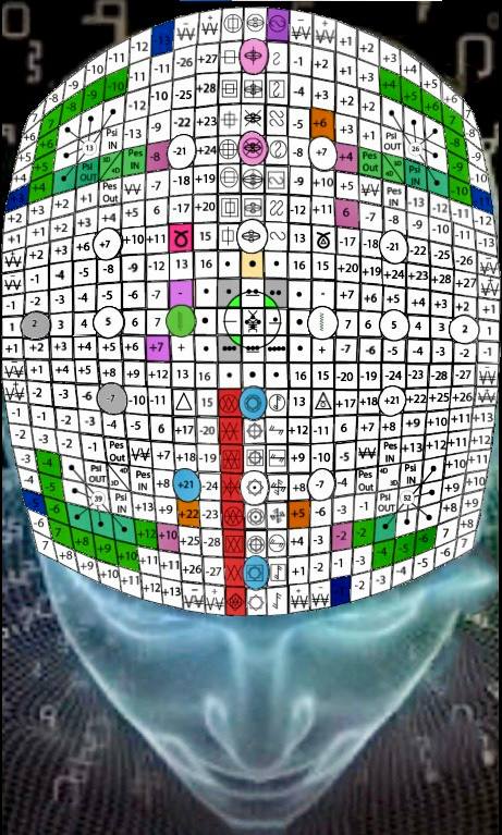 A Matriz do Tempo, V.17, H.19. UMB 215. Matriz do núcleo dos sentidos de quinta força. “Tato do Cubo Cósmico” organiza e coordena o espectro psicofísico inteiro da consciência tátil (interna, externa e etérica) no canal Beta-Beta.