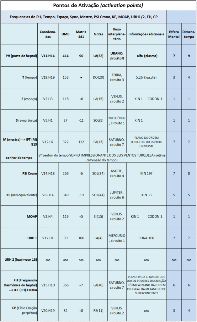 S (syncrônica), V.5, H.1. UMB 37. (-11) Décima Primeira magnitude sublima a Liberação Espectral do fluxo do tempo externo da Criação Cósmica. Corresponde-se com a 11ª horizontal e 11ª vertical que coordenam a matriz do PHM.