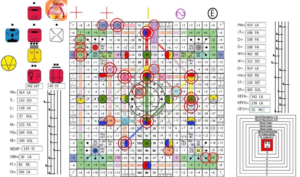 O (KIN oculto), V. 11, H. 14. UMB 414. Runa Harmônica UR 90: O Todo da Arte Galáctica é Definida pelo Tempo. 4ªOitava: Oitava do Todo da Arte Galáctico. Runa da Fila 12. Oitava porta de Unidade do tempo vertical ascendente. Corresponde ao Iluminado (Sol): Quarto Portal da Matriz de Hunab Ku 21. O Sol mede a força da luz-fotón-ciclón de Hunab Ku com a linha de força centrípeta lumínica Dum Duar e a linha de força lumínico-térmica centrípeta de Kemio. A partir daqui é gerado Hipereletron que estimula os estados da mente superconsciente. Ativa a célula harmônica polar sul do polo Darka com o hiper elétron e sela a plasma radial: Alfa. Abre a quinta porta do heptal: a porta da iluminação. Plutão Galáctico-Karmico.