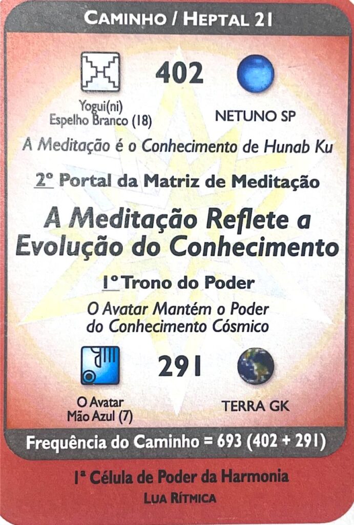 O KE da Frequência Harmônica, Kin 7, V.5, H.7. UMB 299. (+4) Quarta magnitude do circuito PES 6º Dimensional Ativa a comunicação subliminal no campo de força Alfa-Alfa do samadhi profundo. O samadhi profundo ativa a primeira esfera mental: pré-consciente.
