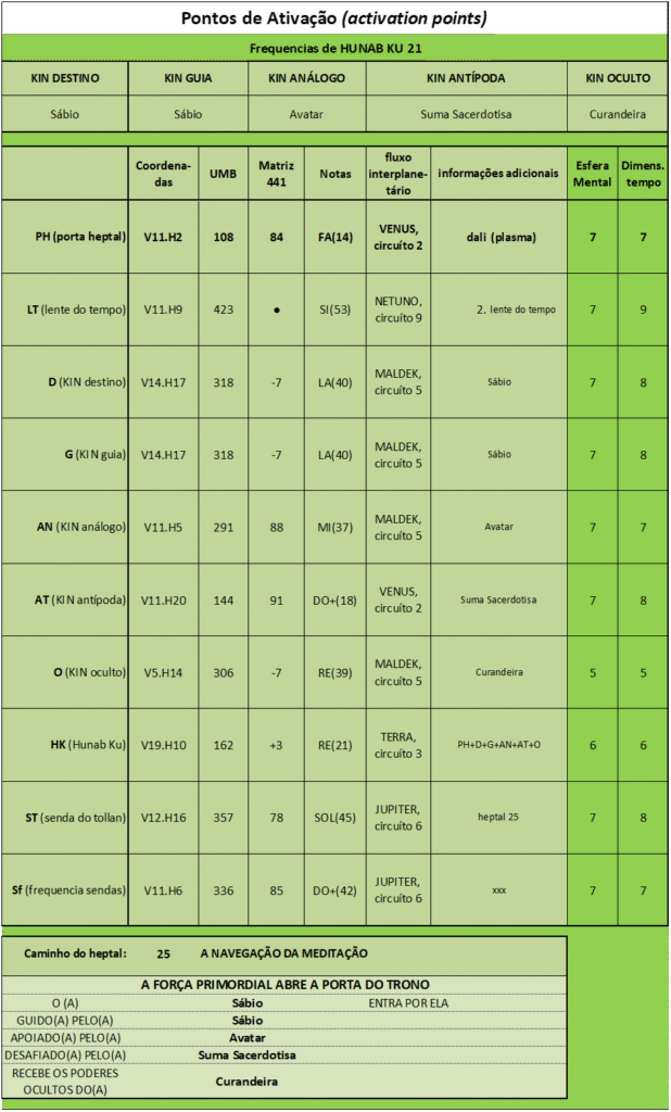 Frequências de HUNAB KU 21