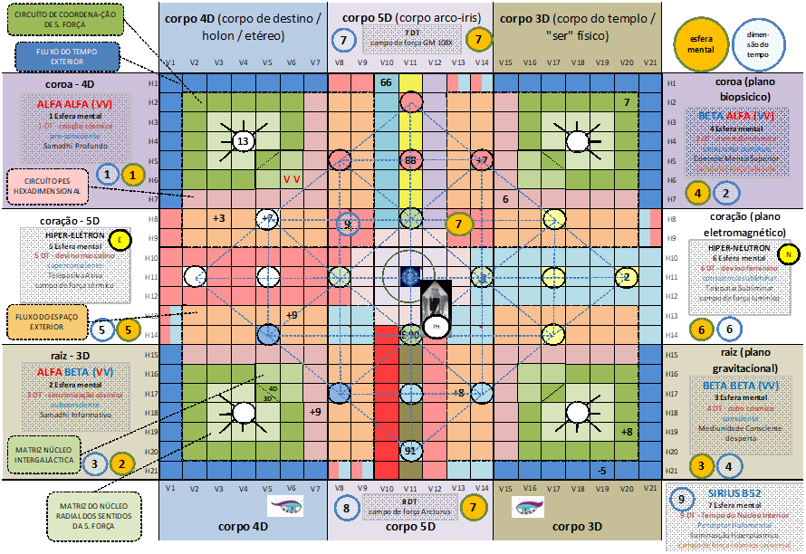 LT (lente do tempo), V.20, H.2. UMB 99. (7) Sétima magnitude do circuito coordenador superconsciente de quinta força do canal Beta-Alfa. Ressonador interno sintonizando e neutralizando os sinais do tempo 5D ao núcleo radial dos sentidos da Ascensão Cósmica. Segunda porta da segunda diagonal de Unidade.