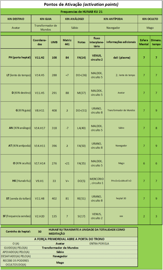 Frequências de HUNAB KU 21