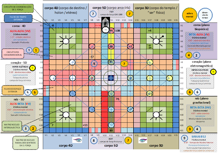 Estamos no circuito 3 (Terra) galático karmico no hipercubo, fluxos interplanetários: o Circuito 3 contem 64 unidades para cada um dos 64 Códons do DNA, coordena o corpo sensorial de energia biopsiquica e modula a radialização dos órgãos sensoriais humanos, Arquétipos o Avatar e o Sábio, acessa o Conselho Terrestre da Sabedoria Realizada.