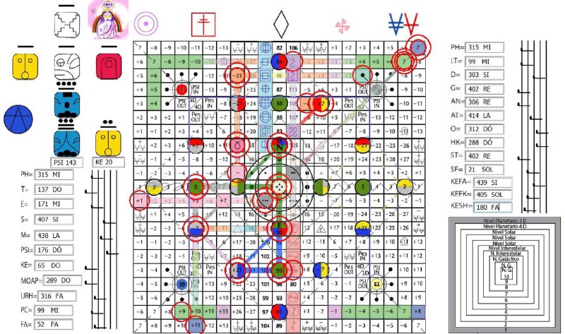 A Matriz Syncrônica, V. 8, H. 10. UMB 407. (–) Unidade sublimadora do Terminal eletroativador Kuali vermelho (tempo radial direito). Sublima o campo de força térmico Kuali vermelho e a corrente elétrica azul Ascendente na Nona Dimensão do Tempo (Núcleo do Tempo Interior), Sétima esfera mental: Perceptor Holomental.