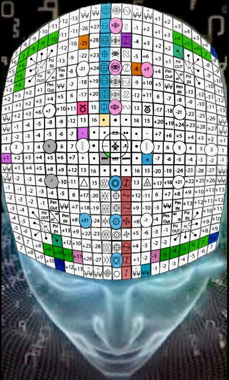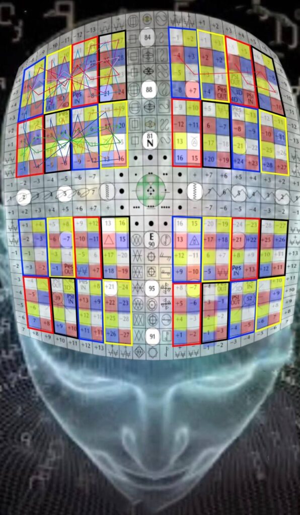 A Matriz do Espaço, 27. V.17, H.3. UMB 171. Matriz do núcleo dos sentidos de quinta força. “Tato da Ascensão Cósmica” organiza e coordena o espectro psicofísico inteiro da consciência tátil (interna, externa e etérica) no canal Beta-Alfa.
