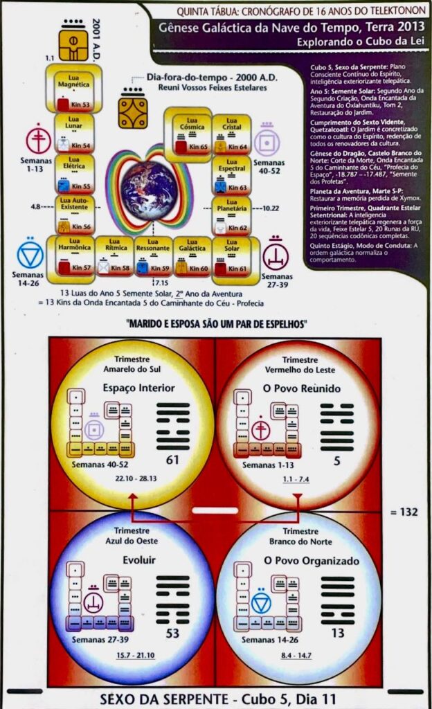 PH, V. 11, H. 17. UMB 315. Runa Harmônica UR 95: O Todo da Arte Galáctico Torna-se Meditação da Realidade. 4ª Oitava: Oitava do Todo da Arte Galáctica. Runa da Fila 12. > Josimar synchronotron: Quinta porta de Unidade do tempo vertical ascendente. Corresponde ao Profeta (Caminhante do Céu): Terceiro Assento de Poder de Hunab Ku 21. Gera o hiperplasma Beta-Alfa secundário do Polo Sul (Darka) estimulando o controle da mente superior e sela o plasma radial Kali. Detem a Corte da Profecía Cósmica. Abre a Quarta porta do heptal. Porta da Iniciação. Marte Solar-Profético.