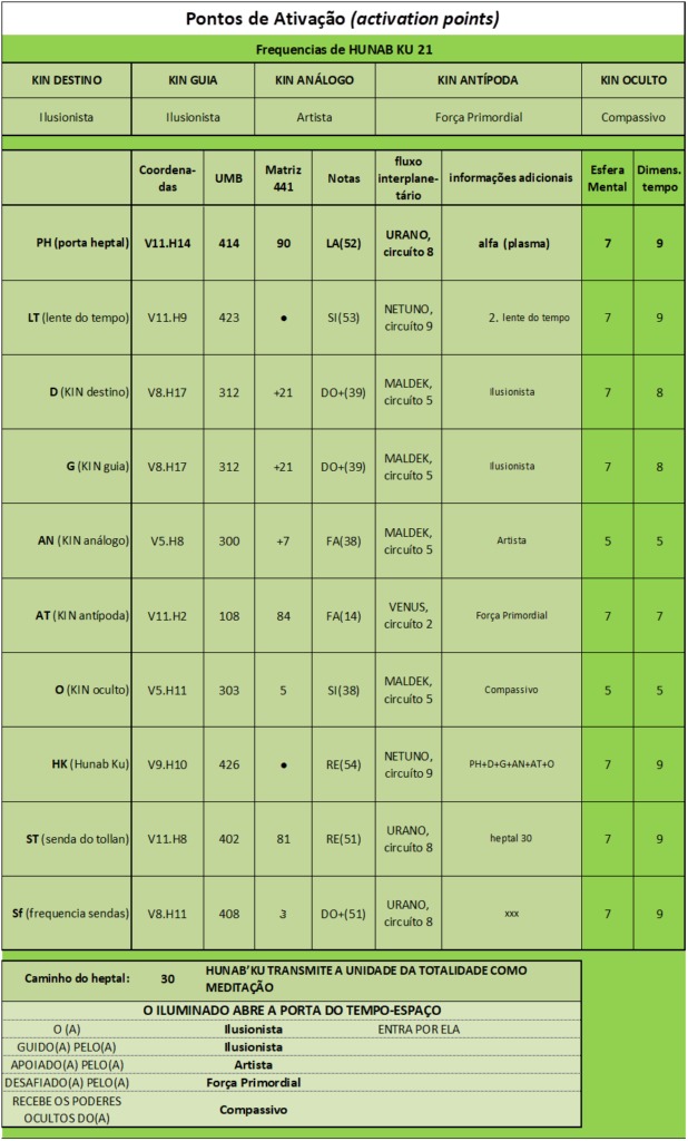 Frequências de HUNAB KU 21