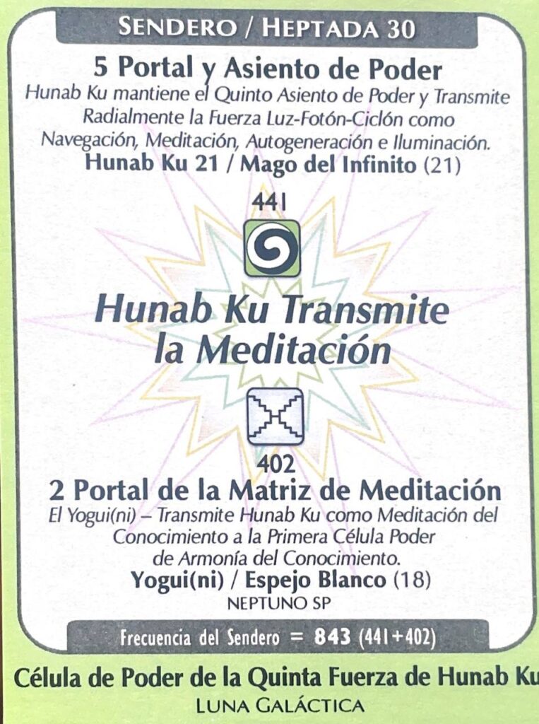 A Senda de Tollan, V. 11, H. 8. UMB 402. Runa Harmônica UR 81: A Radiogenesis Estabelece o Todo da Vida Galáctica. 3ª Oitava: Oitava do Todo da Vida Galáctica. Runa da Fila 11. Oitava porta de Unidade do tempo vertical descendente. Corresponde ao Yogue/ni (Espelho). Segundo Porta da Matriz de Hunab Ku 21. Yogue/ni mede a força da luz-fotón-ciclón de Hunab Ku com a linha de força centrífuga térmica Dum Kuali e a linha de força centrípeta térmica-lumínica Kum. A partir daqui é gerado o Hiperneutron que estimula os estados subliminais da consciência. Ativa a célula harmônica polar norte do polo Marka com o electron mental e sela o plasma radial: Limi. Abre a sexta porta do heptal: a porta da Transcêndencia. Neptuno Solar-Profético.