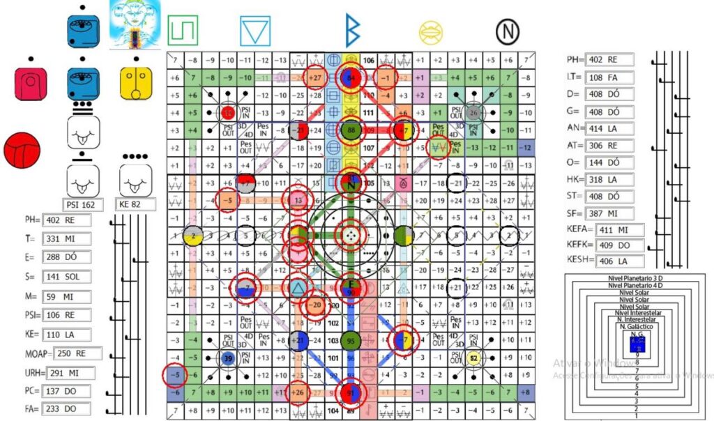 A Matriz Syncrônica, V. 8, H. 20. UMB 141. (+26) Vigésima-Sexta magnitude do fluxo do espaço externo. Ativa o hiperplasma Alfa-Beta da Sincronização Cósmica (na 3ª dimensão do tempo exterior). Campo de força do samadhi informativo (3D) ativado pelo campo de força do Perceptor Holomental radializado radiosônicamente (8D): Comando Harmônico Ascendente.