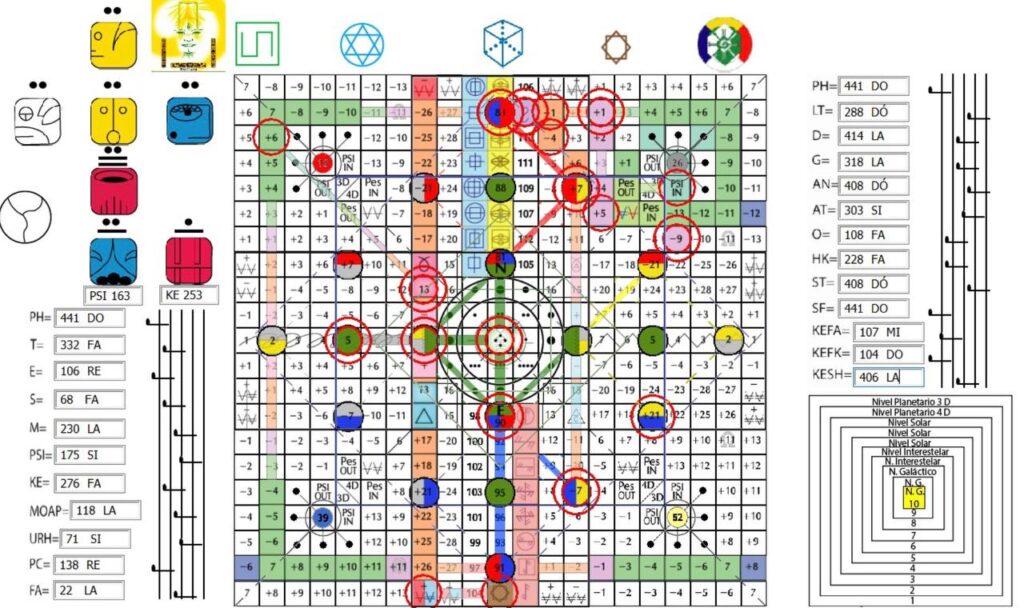 A Matriz Syncrônica, V. 8, H. 21. UMB 68. – Terminal Alfa-Beta Ativa do fluxo do espaço externo hiperplásmico da Sincronização Cósmica (Terceira dimensão do tempo). Campo de força do samadhi informativo ativado pelo campo de força do Perceptor Holomental radializado Radiossônicamente (8D): Comando Harmônico Ascendente.