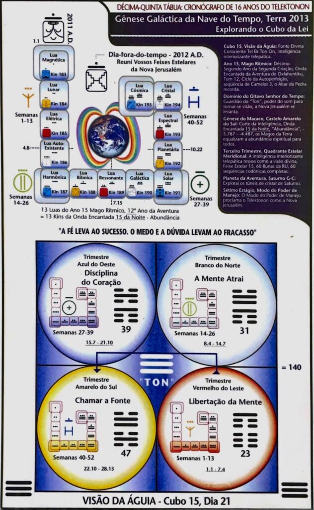 A Lente do Tempo, V. 14, H. 5. UMB 288. (+7) Sétima magnitude do fluxo do espaço externo. Ativa o hiperplasma Beta-Alfa da Ascensão Cósmica (na 2ª dimensão do tempo exterior). Campo de força do controle da mente superior (2D) ativado pelo campo de força (7D) do Perceptor Holomental radializado radiosonicamente: Comando Cósmico Descendente. Corresponde ao Iniciado da Serpiente (Serpente): Primeira Porta de Poder de Hunab Ku 21 na Corte do Avatar (UMB 291). Ativado pela carga elétrica térmico/lumínica ascendente Kum “calor da luz interior” (UMB 399). O sexo é o inicio do conhecimento. Maldek Galáctico-Kármico.