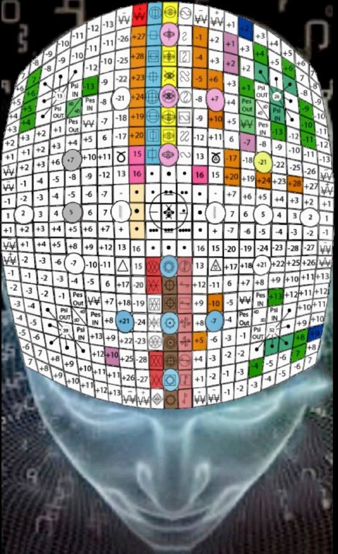 A Matriz do Tempo, V.18, H.19. UMB 216. Matriz do núcleo dos sentidos de quinta força. “Gosto do Cubo Cósmico” organiza e coordena o espectro psicofísico inteiro da consciência gustativa (interna, externa e etérica) no canal Beta-Beta.