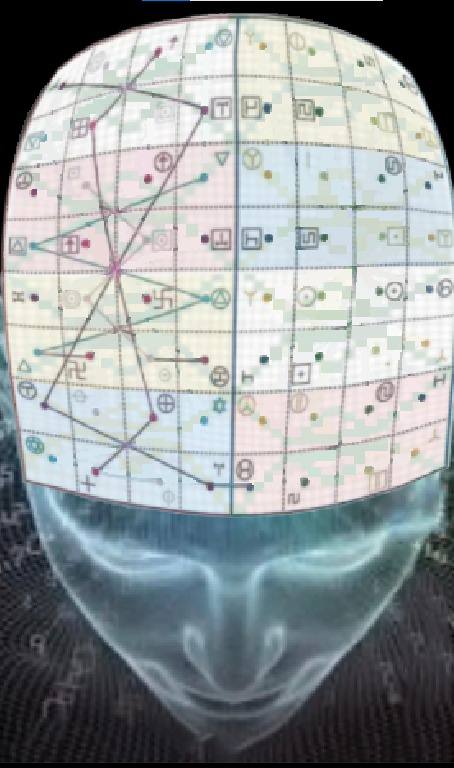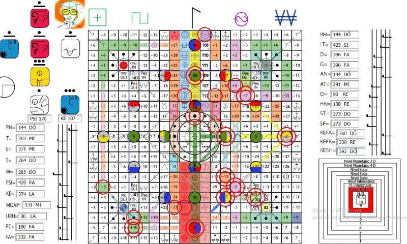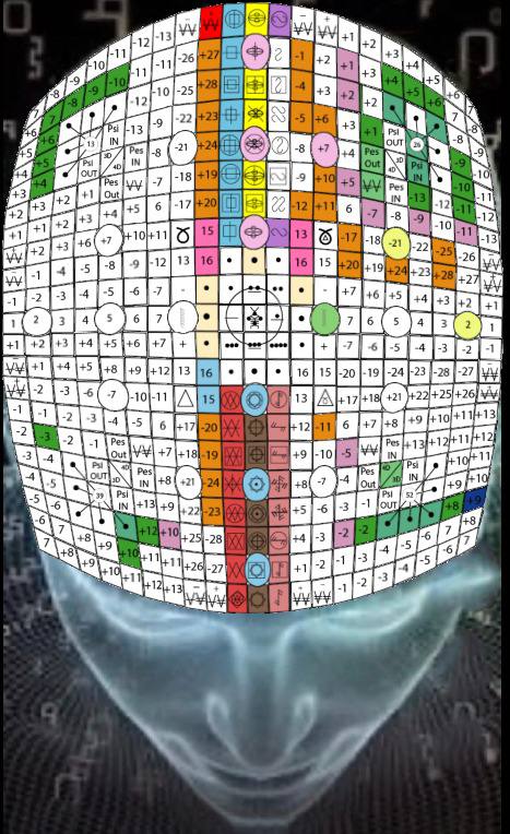 A Matriz do Tempo, V.5, H.19. UMB 203. Matriz do núcleo dos sentidos de quinta força. “Visão da Sincronização Cósmica” organiza e coordena o espectro psicofísico inteiro da consciência visual (interna, externa e etérica) no canal Alfa-Beta.