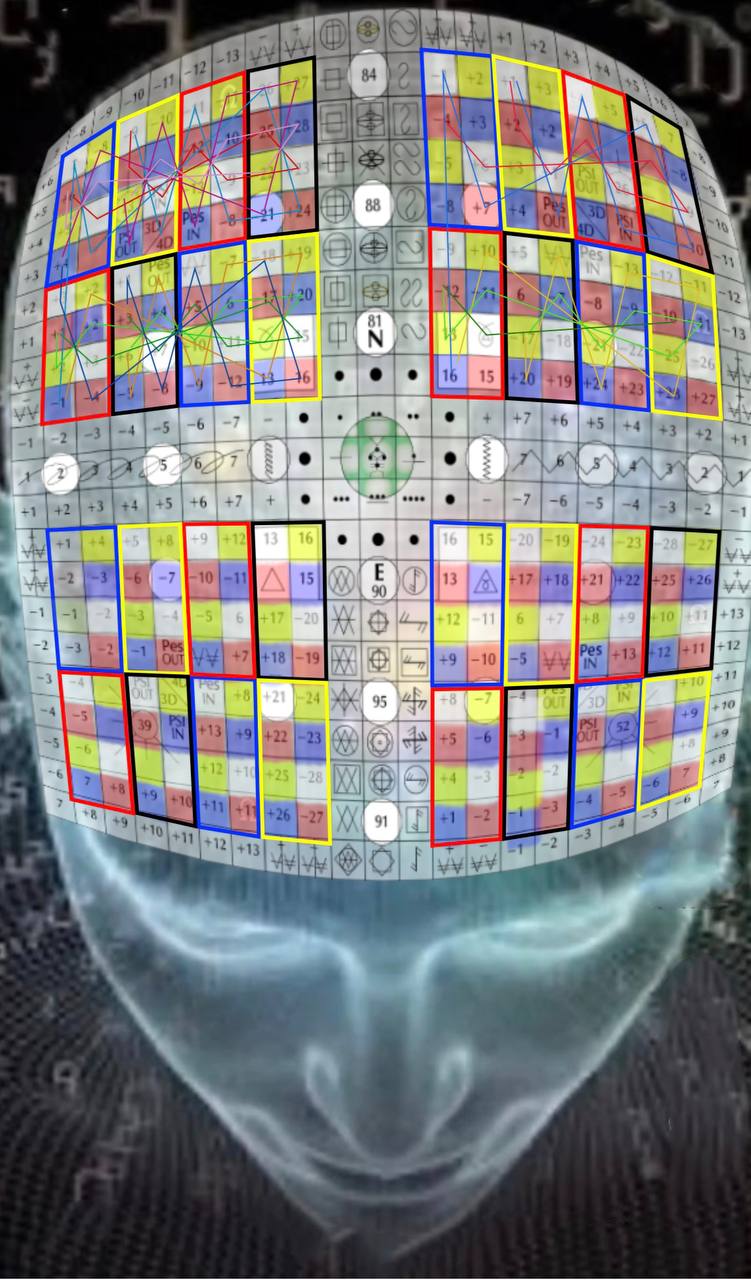PSI Crono, V. 13, H. 13. UMB 417. (16) Unidade coordenadora Mestra do partón-hiperplásmico da célula do hiperpartón Kemio, luz e calor interior. Coordena o 4º quadrante: o fluxo do espaço externo do hiperplasma Beta-Beta do Cubo Cósmico. Beta-Beta interatúa com Kemio e neutraliza o campo de força da mediunidade do consciente desperto. Nona porta da Primeira diagonal de Unidade.
