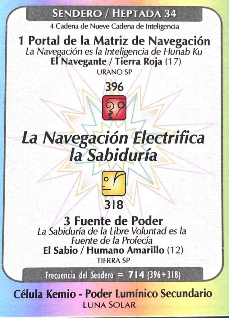O Kin Guia, V. 17, H. 11. UMB 279. (5) Quinta magnitude do campo hipergravitacional organizador do campo de força lumínico Duar azul neutraliza a 6ª esfera mental: consciente Subliminar/atrator do universo paralelo. Núcleo energizante central (H.11 eixo equatorial). Quinta porta de Unidade do tempo radial esquerdo. Corresponde ao Descobridor (Guerrero): Quarto Assento de Poder de Hunab Ku 21 (força centrípeta interna): Corte da Inteligência Cósmica. A Inteligência Cósmica cria a célula de luz galáctica. A inteligência é a força centrípeta da totalidade cósmica: Inteligência é luz. Saturno Solar-Profético.