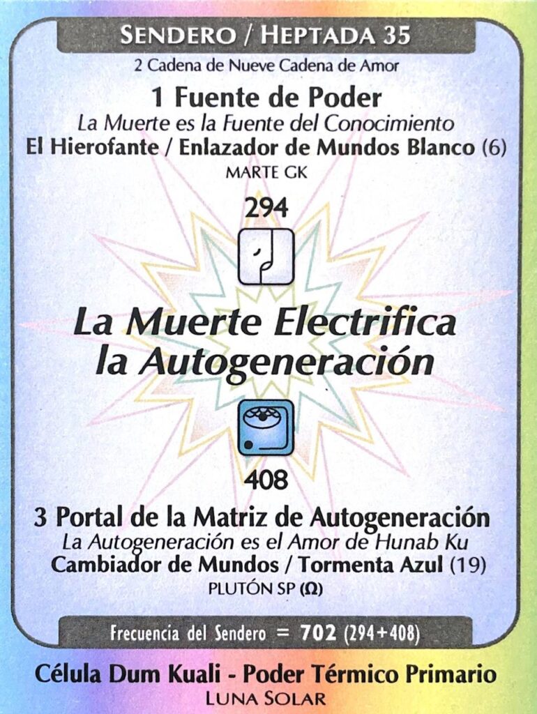 O Kin Destino, V. 20, H. 11. UMB 90. (2) Segunda magnitude do campo hipergravitacional organizador do campo de força lumínico Duar azul neutraliza a 6ª esfera mental: consciente Subliminar/atrator do universo paralelo. Núcleo energizante central (H.11 eixo equatorial). Segunda porta de Unidade do tempo radial esquerdo. Corresponde ao Inocente (Semente): Quarta Porta de luz de Hunab Ku 21 (extremidade centrípeta). Internalizar o processo centrípeto onde as cargas elétricas do hipernêutron e a luz primaria (Dum Duar) combina para criar a força con- sciente Subliminar da Inteligencia Cósmica que abre a Corte do Descobridor (UMB 279). Controla o poder da consciência universal para evoluir os poderes da inteligência cósmica. Júpiter Galáctico-Kármico.