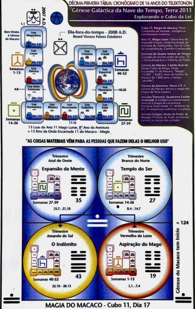 Hoje Semente Cósmica Amarela Kin 104, último Kin da onda encantada do Humano Magnético Amarelo, onda 8, quarta e última onda encantada do Castelo Branco, fim do Castelo branco neste Tzolkin 54, (1.54.2.8.104), anel 38, anel da Semente Ressonante Amarela, nona lua deste anel, Lua Solar do Jaguar, (1.38.9.17), Heptal 35, azul transforma, Hoje Plasma Gama, Terceira porta do Heptal, gera o Hiperplasma Beta Beta que estimula a mediunidade do Consciente Desperto, a mediunidade do Consciente Desperto ativa a terceira Esfera Mental, ativação Cúbica na frente do Cubo, Circuito 6 GK no Hipercubo, fluxos interplanetários, O Circuito 6 é o circuito interno da unidade exterior, coordena a consciência Cósmica do Corpo de Luz Hexadimensional e transferência de informação PES, Arquétipos o Inocente e o Vidente, acessa o Conselho Jupiteriano do Florescimento Criativo,