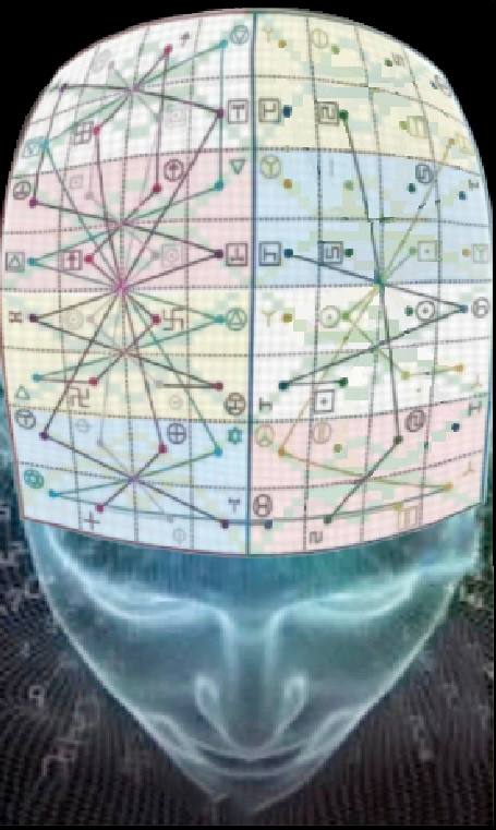A Matriz do Tempo, V.19, H.5. UMB 167. Matriz do núcleo dos sentidos de quinta força. “Visão da Ascensão Cósmica” organiza e coordena o espectro psicofísico inteiro da consciência visual (interna, externa e etérica) no canal Beta-Alfa.