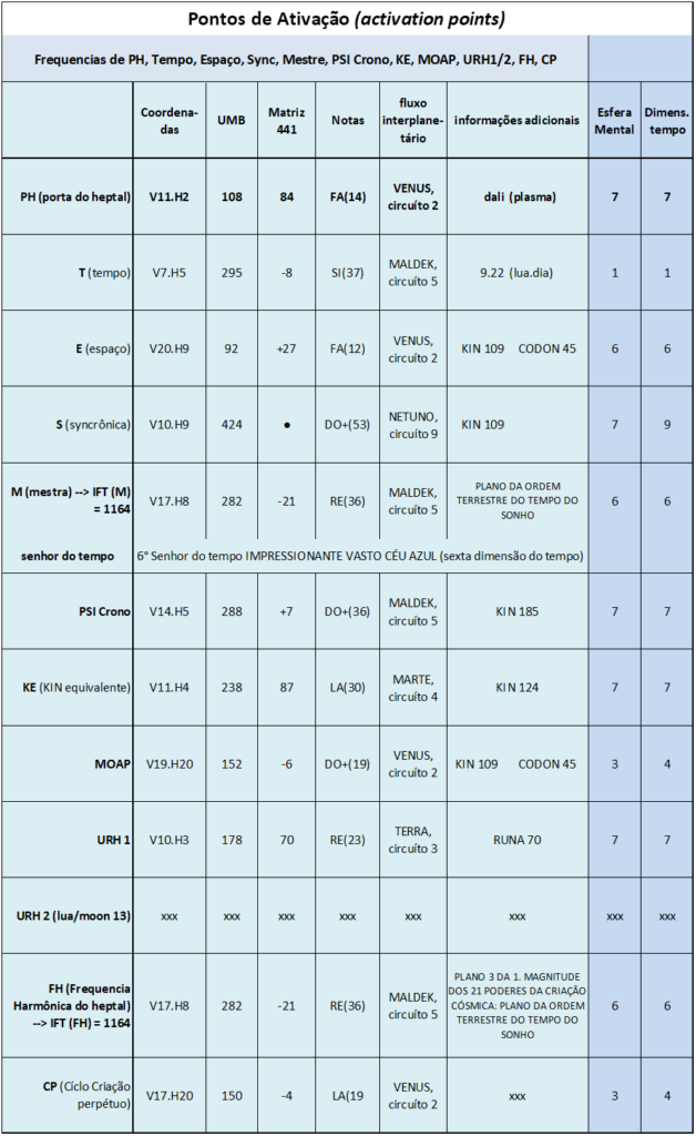 CP (Cíclo Criação perpétuo), V.17, H.20. UMB 150. (-4) Quarta magnitude do circuito coordenador superconsciente de quinta força do canal Beta-Beta. Sublimar e transferir os sinais internos do tempo 5D da forma auto-existente ao núcleo radial dos sentidos do Cubo Cósmico.