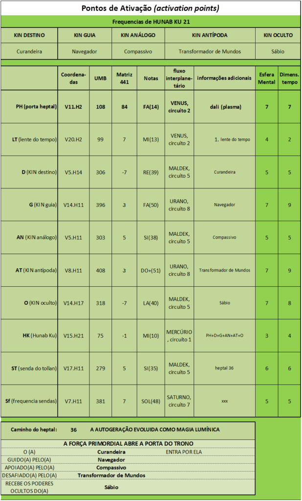 Frequências de HUNAB KU 21