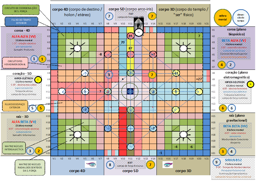 LT (lente do tempo), V.20, H.2. UMB 99. (7) Sétima magnitude do circuito coordenador superconsciente de quinta força do canal Beta-Alfa. Ressonador interno sintonizando e neutralizando os sinais do tempo 5D ao núcleo radial dos sentidos da Ascensão Cósmica. Segunda porta da segunda diagonal de Unidade.
