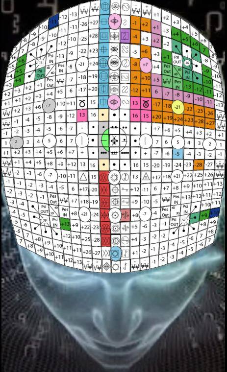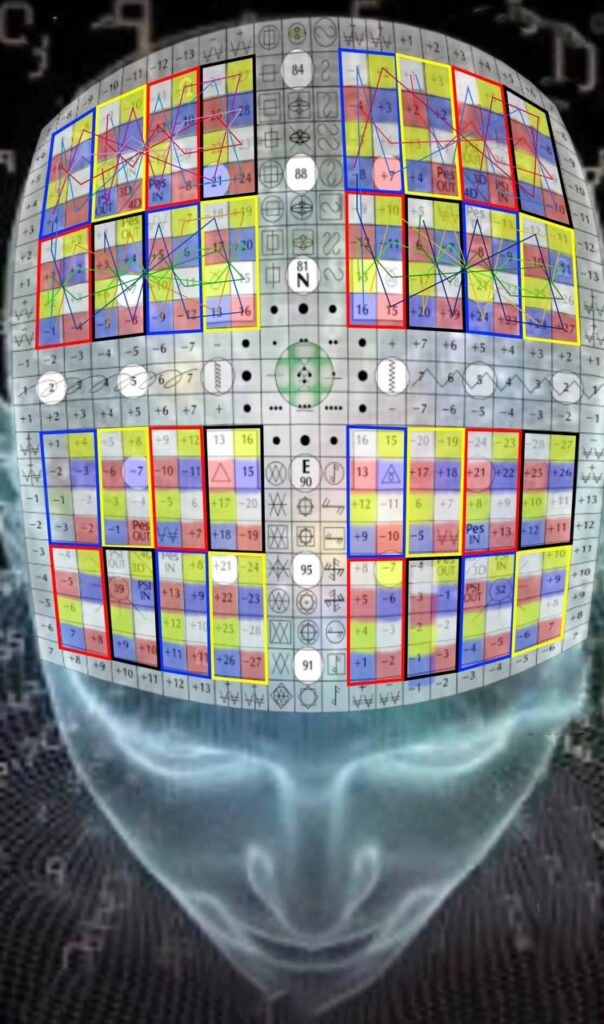 A Matriz do Tempo, V.19, H.18. UMB 154. Matriz do núcleo dos sentidos de quinta força. “Ouvido do Cubo Cósmico” organiza e coordena o espectro psicofísico inteiro da consciência auditiva (interna, externa e etérica) no canal Beta-Beta.