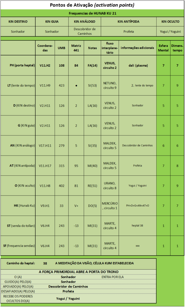 AN (KIN análogo), V. 17, H. 11. UMB 279. (5) Quinta magnitude do campo hipergravitacional organizador do campo de força lumínico Duar azul neutraliza a 6ª esfera mental: consciente subliminar/atrator do universo paralelo. Núcleo energizante central (H.11 eixo equatorial). Quinta porta de Unidade do tempo radial esquerdo. Corresponde ao Descobridor (Guerrero): Quarto Assento de Poder de Hunab Ku 21 (força centrípeta interna): Corte da Inteligência Cósmica. A Inteligência Cósmica cria a célula de luz galáctica. A inteligência é a força centrípeta da totalidade cósmica: Inteligência é luz. Saturno Solar-Profético.