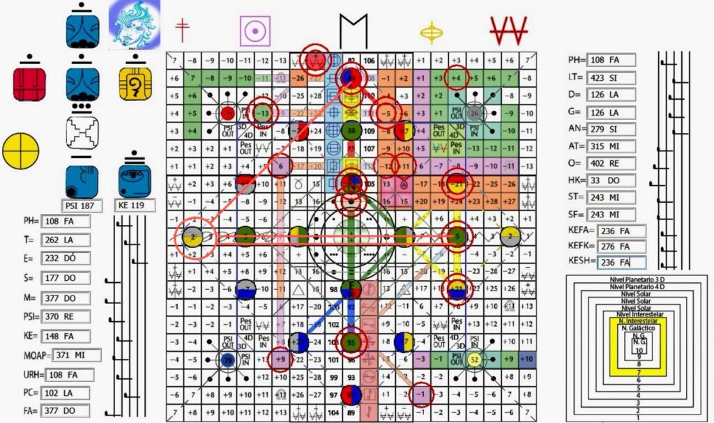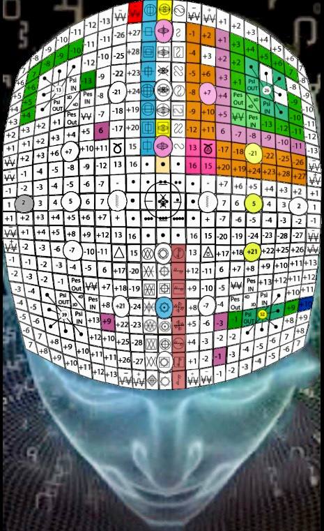 T (tempo), V.7, H.18. UMB 262. (+9) Nona magnitude do circuito PES 6º dimensional. Ativa a comunicação subliminal no campo de força Alfa-Beta do samadhi informativo. O samadhi informativo ativa a segunda esfera mental: subconsciente.