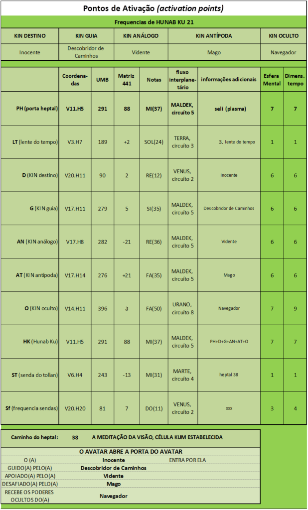 Frequências de HUNAB KU 21