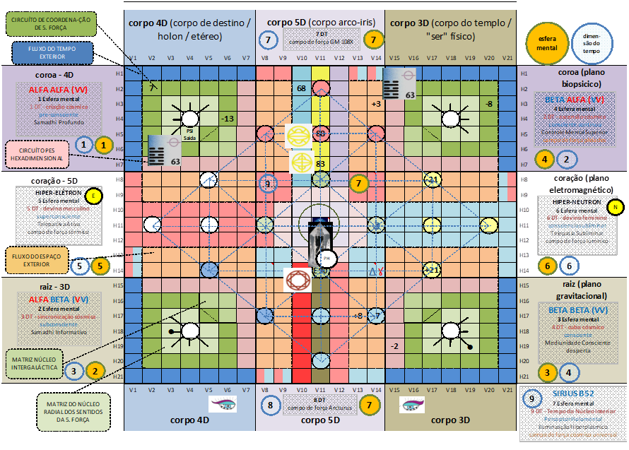 Estamos no circuito 3 (Terra) galático karmico no hipercubo, fluxos interplanetários: o Circuito 3 contem 64 unidades para cada um dos 64 Códons do DNA, coordena o corpo sensorial de energia biopsiquica e modula a radialização dos órgãos sensoriais humanos, Arquétipos o Avatar e o Sábio, acessa o Conselho  Terrestre da Sabedoria Realizada.
