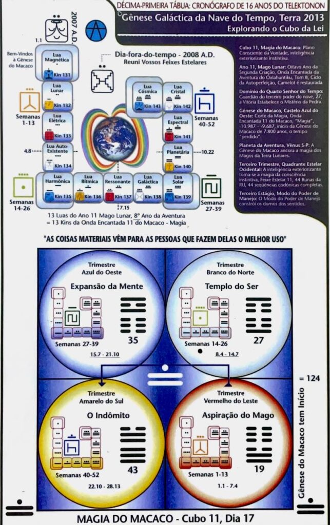 A Senda de Tollan, V. 17, H. 11. UMB 279. (5) Quinta magnitude do campo hipergravitacional organizador do campo de força lumínico Duar azul neutraliza a 6ª esfera mental: consciente Subliminar/atrator do universo paralelo. Núcleo energizante central (H.11 eixo equatorial). Quinta porta de Unidade do tempo radial esquerdo. Corresponde ao Descobridor (Guerrero): Quarto Assento de Poder de Hunab Ku 21 (força centrípeta interna): Corte da Inteligência Cósmica. A Inteligência Cósmica cria a célula de luz galáctica. A inteligência é a força centrípeta da totalidade cósmica: Inteligência é luz. Saturno Solar-Profético.