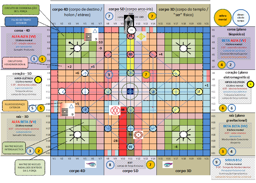 T (tempo), V.7, H.4. UMB 242. (-9) Nona magnitude do circuito PES 6º Dimensional sublima a comunicação subliminal no campo de força Alfa-Alfa do samadhi profundo. O Samadhi profundo sublima a primeira esfera mental: pré-consciente.
